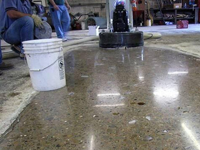 清除地面杂物--粗磨---泡料---细磨---泡料---数种磨片抛光